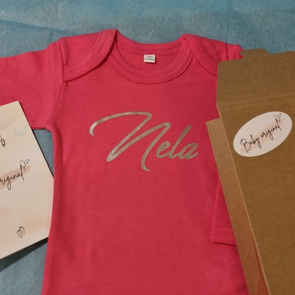 - Body je praktickým a zároveň sentimentálnym darčekom. Môžete si vybrať meno bábätka, milý text alebo iný nápis podľa želania. Vyrobené z kvalitného, mäkkého materiálu, ideálne pre citlivú pokožku novorodencov.
