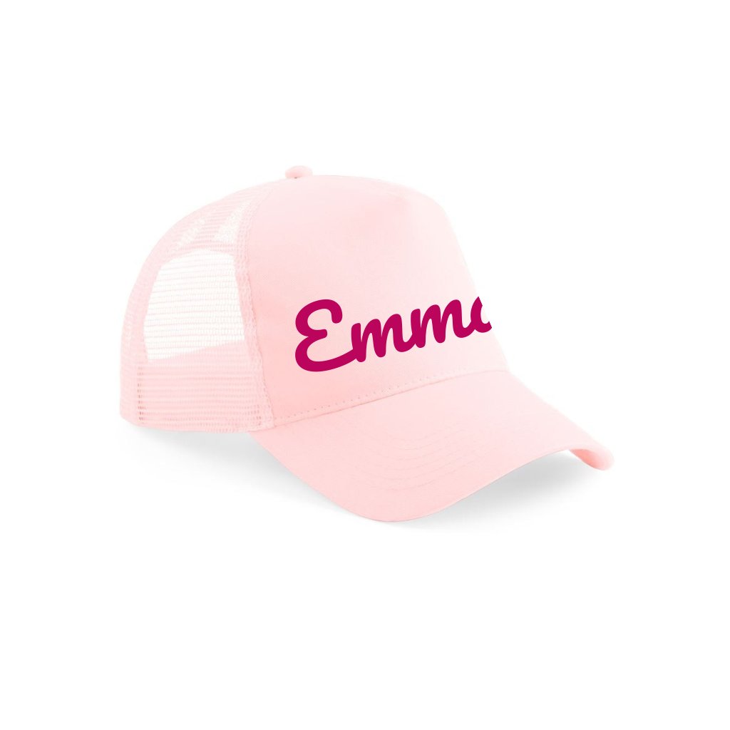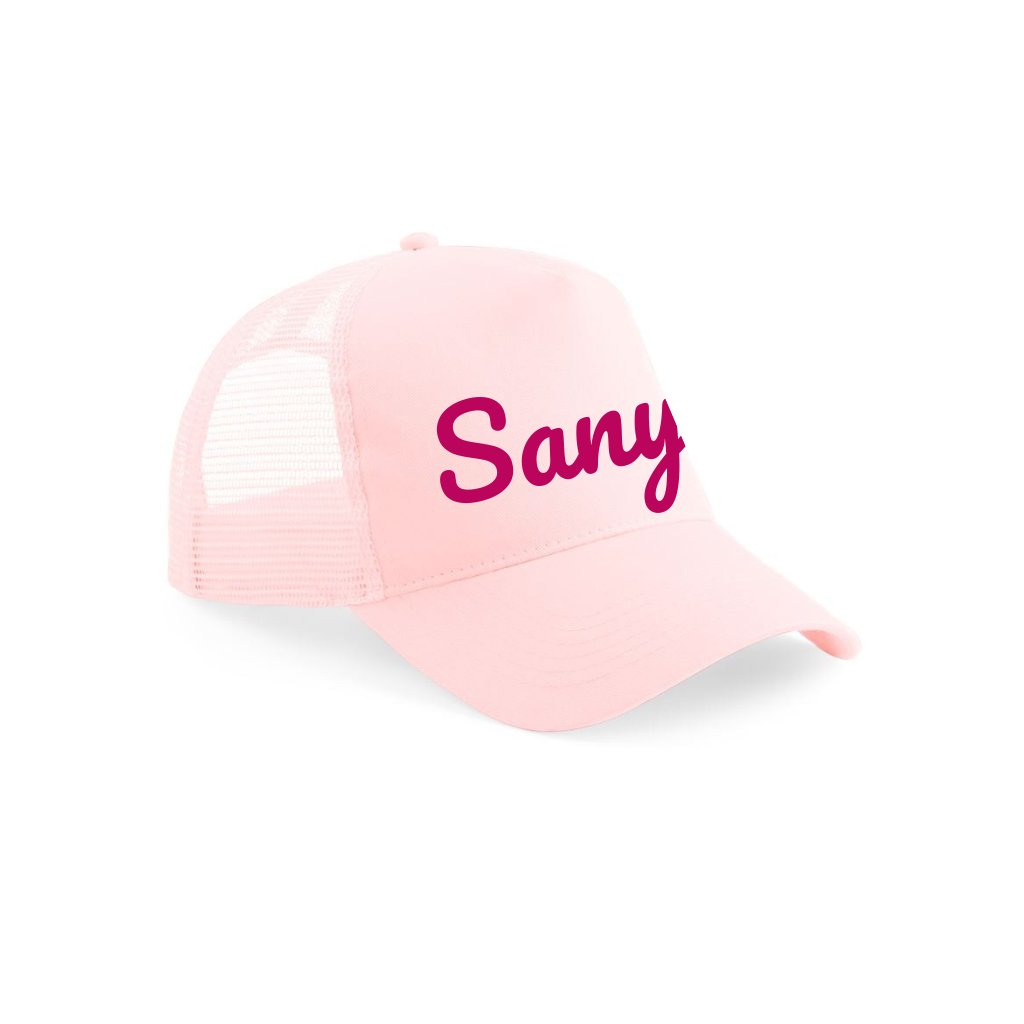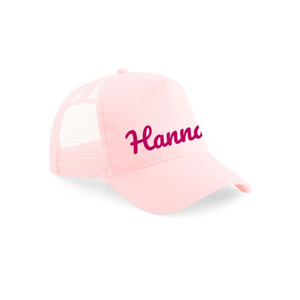 detská šiltovka s menom podľa želania - broskyňová svetlá s trblietavým nápisom