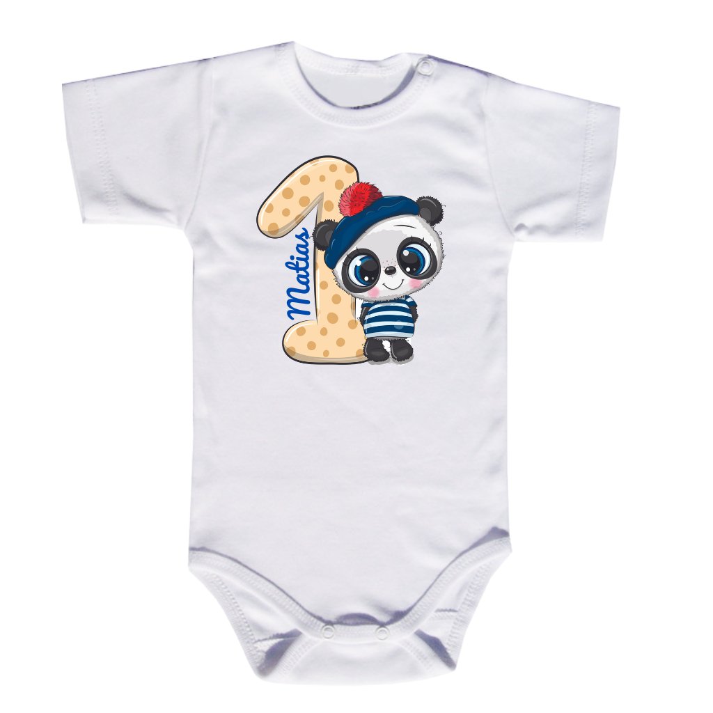 narodeninové body s menom - prvé narodeniny panda - krátky rukáv