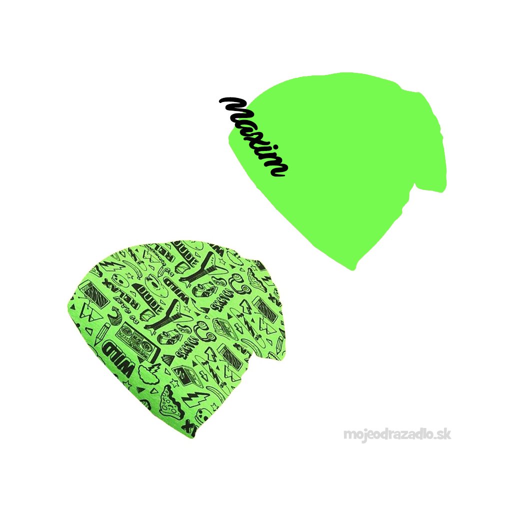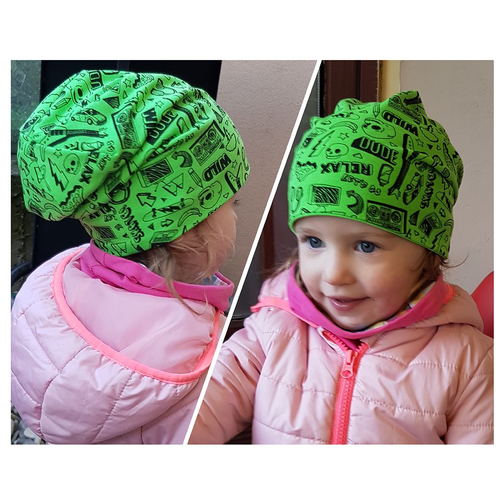 obojstranná čiapka ROCK AND ROLL - neón zelená veľ.2-3 roky