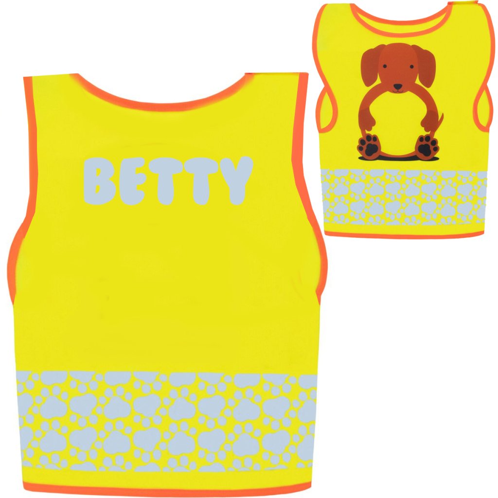 reflexná vesta s reflexným menom DOG - žltá