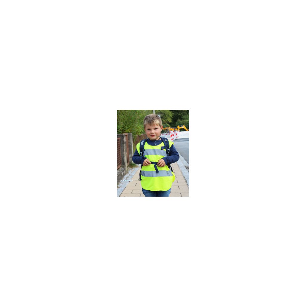 Materiál: 100% polyester s 5cm reflexnými pásikmi na oboch stranách