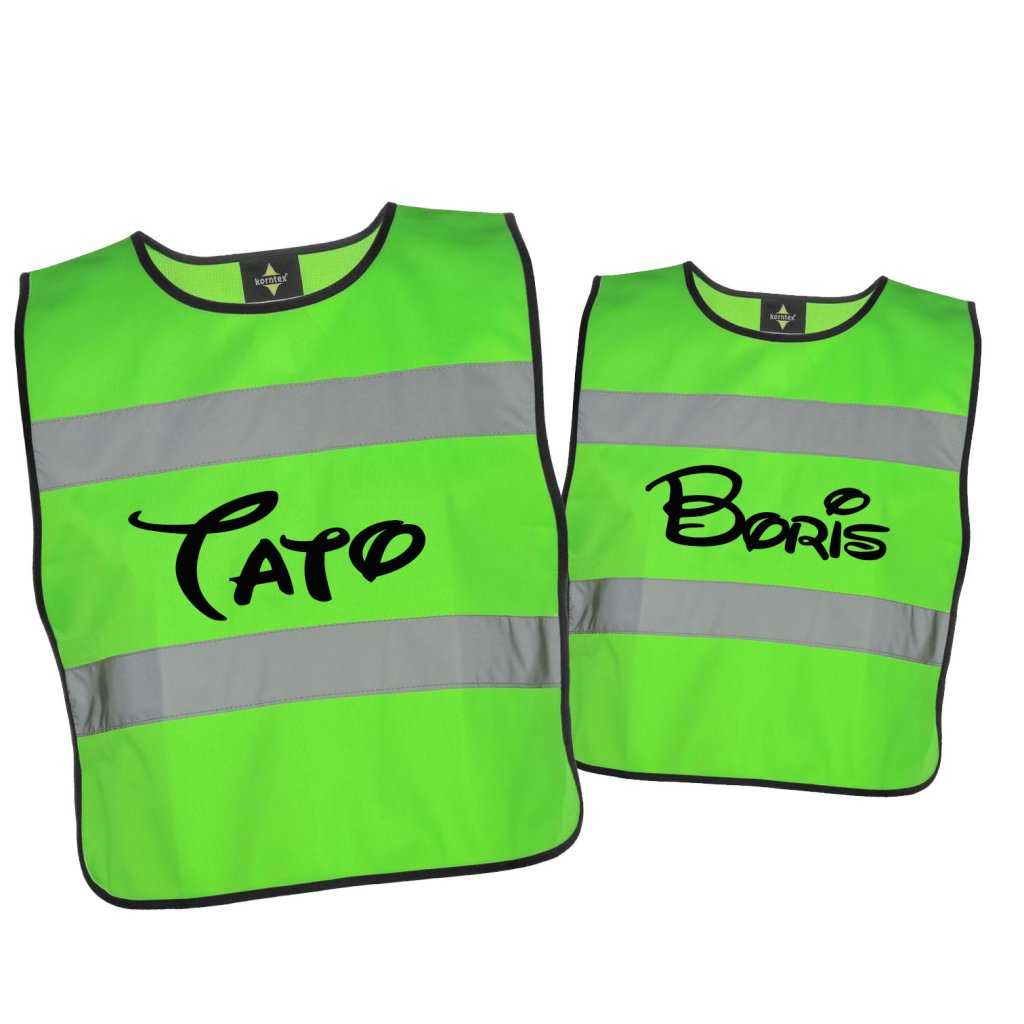 Reflexná vesta s menom alebo iným textom pre celú rodinu  - neon ružová