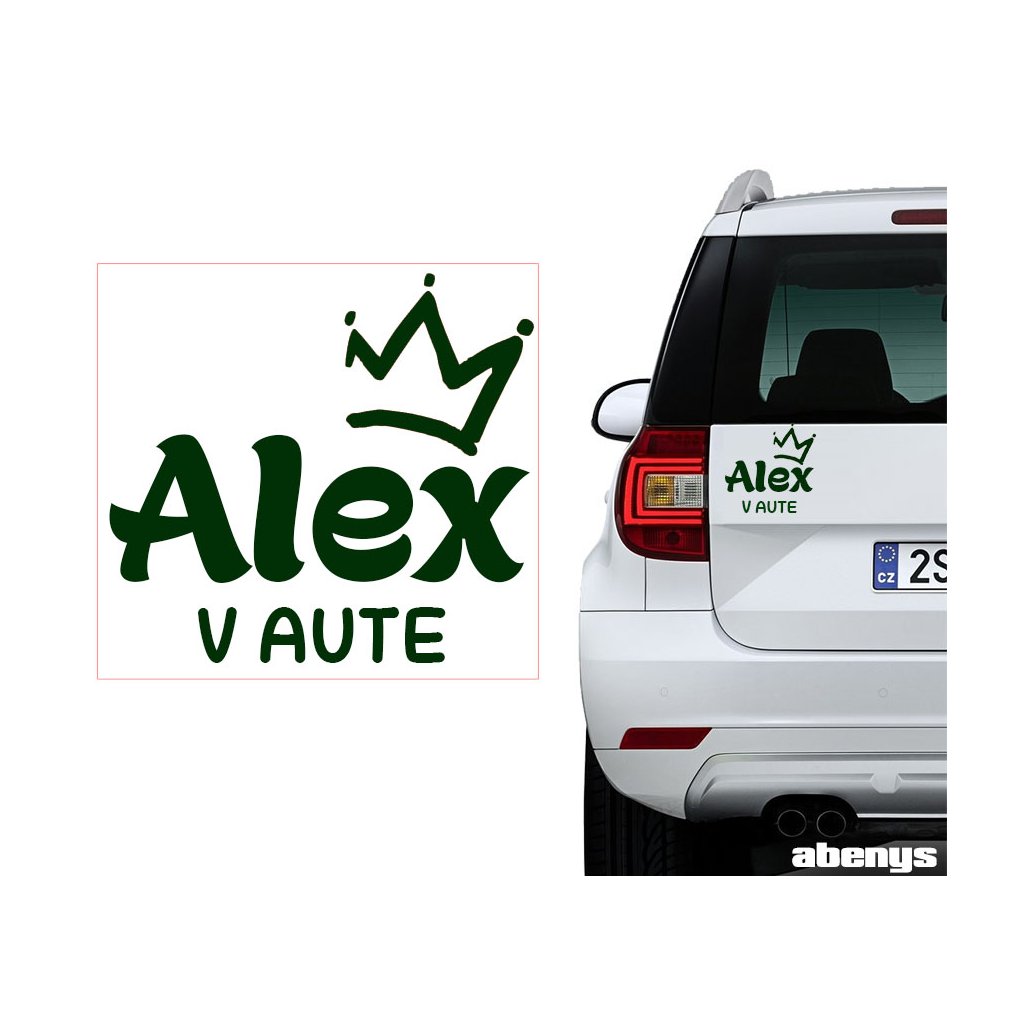 rezaná nálepka na auto s vlastným textom 15 x 15 cm / koruna princ