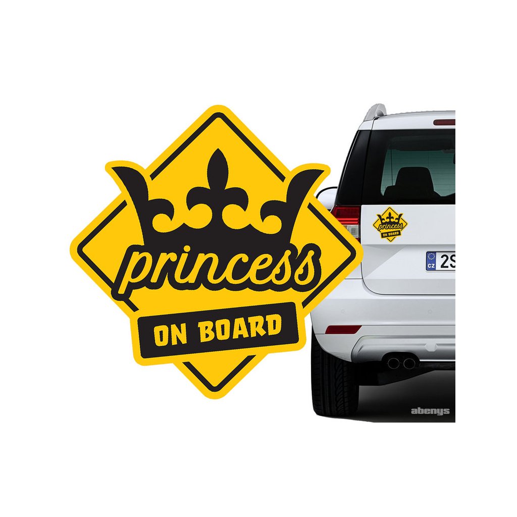 Samolepka na auto - žltý štvorec - PRINCESS ON BOARD