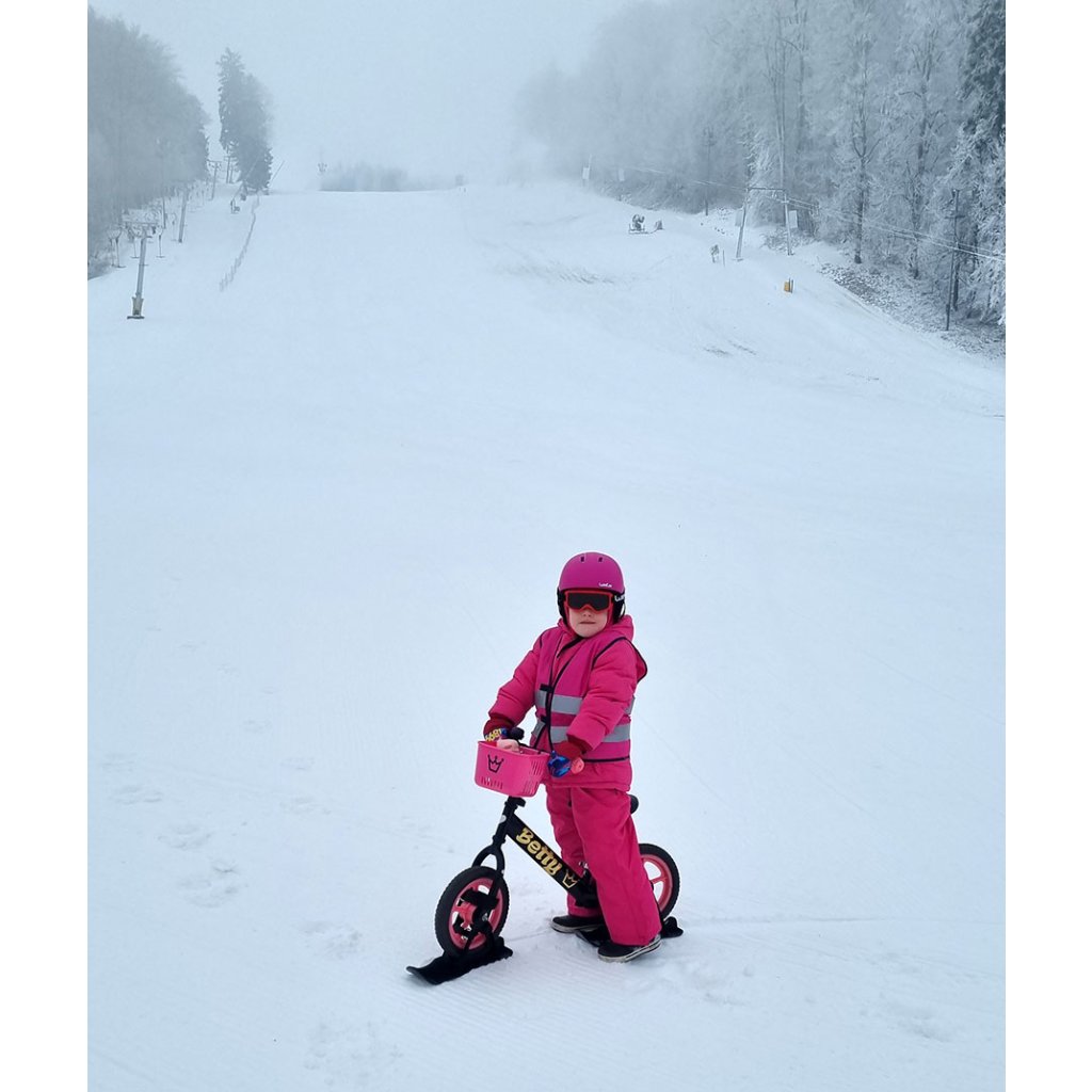 Keď nasneží,nemusíte svoje odrážadlo odložiť do kúta. Adaptéry s lyžami jednoducho pomocou uťahovacích pásikov primontujete na kolesá a môžete ísť....